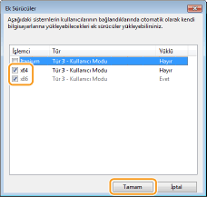 Yazdırma sunucusunun işletim sistemine bağlı olarak aşağıda belirtilenlerden ilave sürücüleri seçin.