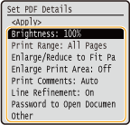 ניתן להדפיס קובצי PDF שמוגנים באמצעות סיסמה על-ידי הזנת הסיסמה הנדרשת לפתיחתם. הזן את הסיסמה ובחר <Apply>.