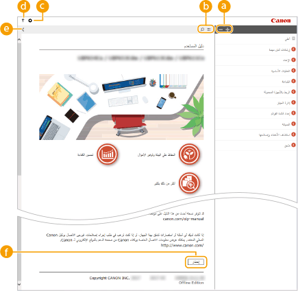 تظهر هذه الصفحة عند بدء تشغيل دليل المستخدم.