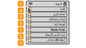 في لوحة التشغيل. استخدم هذه الشاشة لتحديد الإعدادات وتسجيل الوظائف.