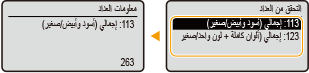 يمكنك التحقق من الإجمالي المنفصل لعدد الصفحات المستخدمة في المطبوعات الملونة والمطبوعات باللون الأبيض والأسود. ويشمل عدد المطبوعات مطبوعات طباعة وسائط الذاكرة والقائمة وأيضًا مطبوعات البيانات المأخوذة من أجهزة الكمبيوتر.