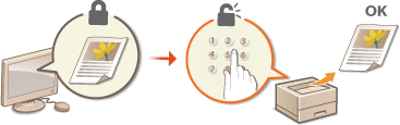 عن طريق إعداد رمز PIN لمستند ما عند الطباعة من كمبيوتر، يتم إبقاء المستند في ذاكرة الجهاز، ولا تتم طباعته إلا بعد إدخال رمز PIN الصحيح على لوحة تشغيل الجهاز. هذه الوظيفة تسمّى "الطباعة الآمنة"، والمستند المحمي برمز PIN يسمّى "مستندًا محميًا". استخدام الطباعة الآمنة يحفظ مطبوعات المستندات السرّية من البقاء دون رقابة.