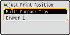 اگر سند در مرکز یا خارج از محدوده قابل چاپ، چاپ می شود، موقعیت چاپ را تنظیم کنید. می توانید موقعیت چاپ را برای هر منبع کاغذ تنظیم کنید. می توانید موقعیت چاپ را در محدوده 5.0- میلی متر تا 5.0+ میلی متر در فواصل 0.1 میلی متر تنظیم کنید.