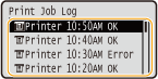 زمانی که <Display Job Log> بر روی <Off> تنظیم باشد، نمی توانید گزارشات چاپ را بررسی کنید. <Display Job Log>