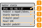 Ali bo naslov IP prikazan, lahko določite na zaslonu <Nadzor stanja> tako, da nastavite <Prikaži naslov IP>.