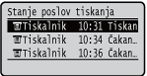 Prikaže trenutno stanje izbranega elementa. Kot primer je spodaj prikazan zaslon <Stanje poslov tiskanja>.