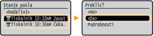 Preklic iz Remote UI (Oddaljeni uporabniški vmesnik)Izpisovanje lahko prekličete na strani [Job Status] na Remote UI (Oddaljeni uporabniški vmesnik): Preverjanje trenutnega stanja dokumentov za izpisovanje