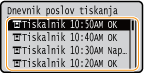 Če je možnost <Prikaz dnevnika poslov> nastavljena na <Izklopi>, si ne morete ogledati dnevnikov tiskanja. <Prikaz dnevnika poslov>