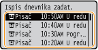 Ako je mogućnost <Prikaz dnevnika zadataka> postavljena na <Isključ.>, dnevnike o ispisu nije moguće provjeriti. <Prikaz dnevnika zadataka>