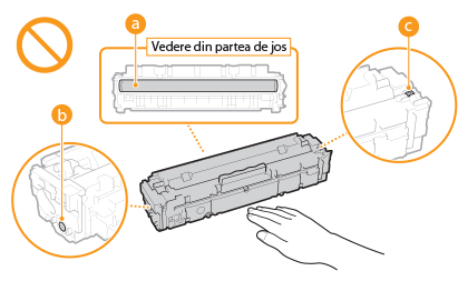 Asigurați-vă că țineți cartușul de toner de mâner.