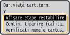 Dacă se afișează un mesaj pentru cartușul de toner negru în timp ce este primit un fax prin Internet, aparatul nu imprimă ca să se evite imprimarea neclară. Pentru a continua imprimarea chiar dacă nivelul de toner rămas în cartuș este scăzut, setați <Contin. imprim. când niv. cart. e scăz.> la <Pornit>. <Contin. imprim. când niv. cart. e scăz.>