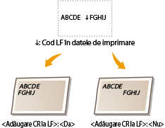 Dacă se specifică o setare pentru imprimare atât de la driverul de imprimantă, cât şi de pe panoul de operare al aparatului, specificaţia de la driverul de imprimantă o suprascrie pe cea de pe panoul de operare. Specificaţia de la panoul de operare devine eficientă în anumite cazuri specifice, cum ar fi la efectuarea imprimării PS/PCL şi a imprimării din UNIX sau de la alt sistem de operare care nu acceptă drivere de imprimantă.