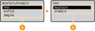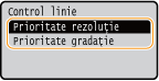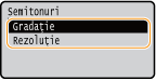 Specificaţi metoda de procesare utilizată pentru a reproduce gradaţia. <Mare 2> oferă o gradaţie mai fină decât <Mare 1>.