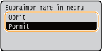 Chiar dacă se selectează <Pornit>, datele sunt imprimate utilizând numai tonerul K (negru) în funcţie de setarea <Profil de ieşire> sau <Text negru pur>.
