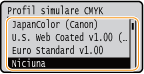 Imprimă date CMYK utilizând un model color CMYK dependent de dispozitiv fără aplicarea profilului de simulare CMYK.