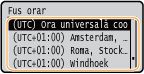 Setaţi <Fus orar> înainte de a seta data şi ora curente. Dacă setarea <Fus orar> este modificată ulterior, data şi ora curente sunt, de asemenea, modificate corespunzător.