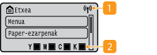 Toner-kartutxoetan gelditzen den kantitatea bistaratzen du etapetan. Hau ezkutuan dago pantaila aktibo dagoenean.