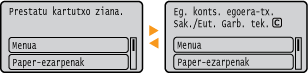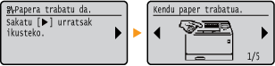 Pantailan mezuak agertzen dira papera agortzen denean, toner-kartutxoaren erabilera-epea amaitzean eta antzeko egoeretan. Informazio gehiago jasotzeko, ikusi "Arazoen konponketa (FAQ)" lineako eskuliburuen web-orrian.