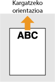 Atal honetan aurretik inprimatutako papera nora begira eta zein orientaziorekin kargatu behar den azaltzen da. Papera paper-tiraderan edo eskuz elikatzeko erretenean kargatzeko prozedura orokorraren deskribapen bat jasotzeko, ikusi Papera paper-tiraderan kargatzea edo Papera eskuz elikatzeko erretenean kargatzea.