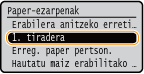 Sarritan aldatu behar baduzu kargatu beharreko paperaren tamaina, ezarri hona: <Librea>; honek ezarpenak aldatzeko beharrezkoak diren pausuak murriztuko ditu. Hala ere, kontuan izan konfigurazio horri esker makinak inprimatu dezakeela, baita inprimagailuaren kontrolatzaileko paper-motaren ezarpena eta makinan benetan kargatutako paper-motaren artean desorekarik badago ere.