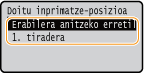 Dokumentu bat erdian inprimatzen ez bada, edo inprimatze-eremutik kanpo inprimatzen bada, doitu inprimatzeko kokapena. Inprimatzeko kokapena paper-iturri bakoitzean doitu dezakezu. Inprimatzeko kokapena doitu dezakezu tarte honetan: -5,0 mm - +5,0 mm gehikuntza hauekin: 0,1 mm.