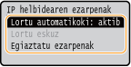 Egiaztatu <IP automatikoa> <Aktibatuta> ezarpena duela.