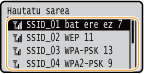 Hari gabeko konexioa hari gabeko router bat hautatuz konfiguratuz gero, WEP autentifikazioa hona ezarriko da <Sistema irekia> edo WPA/WPA2 zifratze metodoa hona ezarriko da <Automatikoa> (AES-CCMP edo TKIP). WEP autentifikaziorako <Gako partekatua> hautatu nahi baduzu edo WPA/WPA2 zifratzerako <AES-CCMP> hautatu nahi baduzu, konexioa <Idatzi sarearen izena eskuz> erabiliz konfiguratu beharko duzu. Konexioa konfiguratzea xehetasun ezarpenak zehazten