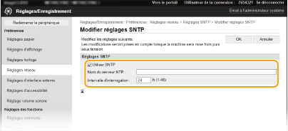 [Réglages SNTP].