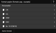 Si l'écran illustré ci-dessus ne s'affiche pas lorsque le papier est chargéSi vous chargez toujours le même papier dans le bac multifonctions, vous pouvez vous épargner les opérations de réglage du format et du type de papier à chaque impression en les définissant par défaut. Notez que si un réglage par défaut est enregistré, l'écran illustré ci-dessus ne s'affiche pas. Pour afficher l'écran, sélectionnez <Spécifier lors du chargement du papier> (Enregistrement des paramètres papier par défaut du bac multifonctions). |