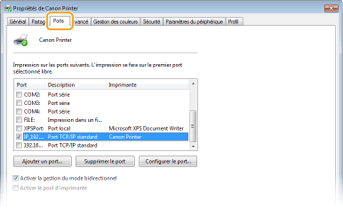 Dans l'onglet [Ports], assurez-vous que la case [Activer la gestion du mode bidirectionnel] est cochée.