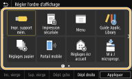 Pour faciliter l'utilisation des boutons, vous pouvez les réorganiser comme vous le souhaitez. Vous pouvez également insérer un espace à la place d'un bouton pour clarifier l'affichage sur l'écran Accueil.