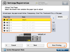 لا تستخدم هذه الوظيفة مع الورق الذي تمت طباعة شعارات عليه بالفعل أو أنماط عليه (ورق مطبوع مسبقًا) أو إذا كانت الأوراق متسخة. يجب عليك إضافة أوراق كافية إلى سطح الورق لطباعة صفحات الضبط. في حالة حدوث انحشار للورق أثناء مهمة ذات ضبط تلقائي، فقد لا تتم طباعة صفحات الضبط. |