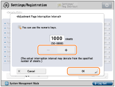 لن يتم تنفيذ الضبط التلقائي لأية وظائف تبدأ بمقاطعة المهمة الجارية. قد لا تبدأ مثل هذه المهام في فترات الانقطاع التي تحددها. ضع في اعتبارك أن إعداد الفاصل الزمني لا يزيد عن مجرد تقدير. تعمل وظيفة تصحيح الانقطاع على تقليل التقلبات داخل الوظائف التي تحتوي على عدد كبير من الأوراق. إذا كنت ترغب في إعطاء الأولوية للدقة عن طريق ضبط فترات المقاطعة، فقم بزيادة معدل تكرار المقاطعة. ومع ذلك، سيتطلب ذلك أيضًا المزيد من صفحات التعديل وبالتالي تقليل الإنتاجية. قد لا يكون الضبط فعالاً للوظائف التي يتم فيها استخدام أنواع متعددة من الورق في وقت واحد. عندما تبدأ إحدى المهام بضبط الألوان تلقائيًا، تتم طباعة صفحة اختبار قياسية قبل الفاصل الزمني المحدد للانقطاع من أجل تنفيذ عملية الضبط. |