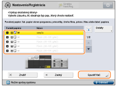 [Papier] na výber nadstavca na papier s papierom, ktorý chcete nastaviť. Potom stlačte tlačidlo [Nastavenia správy typu papiera] – zobrazí sa okno [Nastavenia správy typu papiera] s príslušným vybratým papierom.
