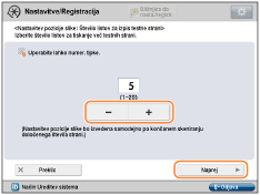 Te funkcije ne uporabljajte s papirjem, na katerem so že natisnjeni logotipi ali vzorci (vnaprej potiskan papir), ali če so listi papirja umazani. V predal za papir morate dodati dovolj listov za tiskanje strani za prilagajanje. Če se med tiskanjem opravila s samodejnim prilagajanjem papir zagozdi, strani za prilagajanje morda ne bodo natisnjene. |