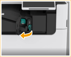 2 | 转动绿色旋钮,将卡纸输送到打孔组件的出口。 |