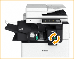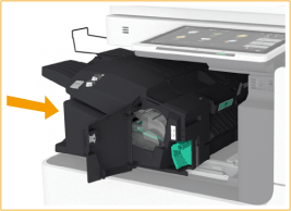 (版本3.12-)如果在安装了内置分页装订处理器的时候在主机内部发生卡纸,则需要采取其他步骤来清除卡纸。这里以C5800系列的图片为例来介绍相关步骤。