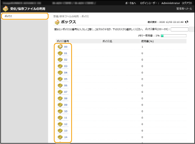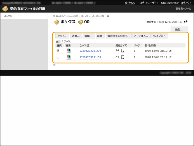 ![]() | ユーザーボックスに保存されているファイルをリモートUIから印刷、削除することができます。 |