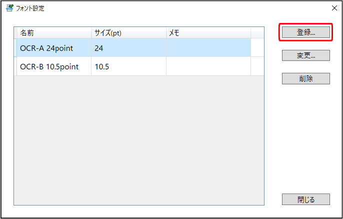 [フォント設定]画面で、[登録]をクリックする