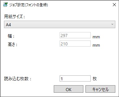 [ジョブ設定(フォントの登録)]画面で、フォント登録で使用する印刷ジョブの用紙サイズを設定する
