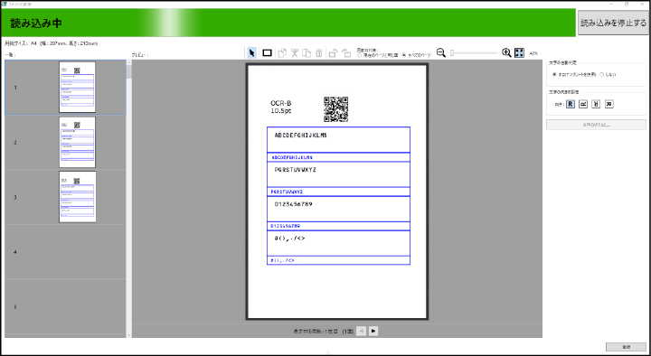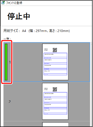 [文字の自動判定]を[する(テンプレートを使用)]にしたとき 登録済みのフォントは、[一覧]に緑色のバーが表示されます。 |
