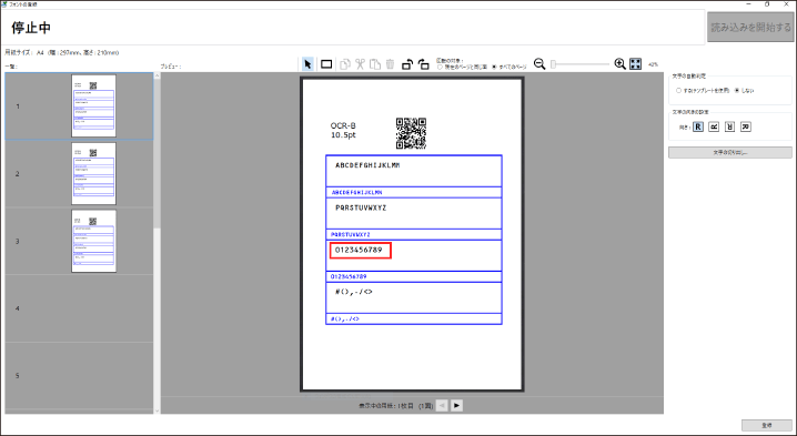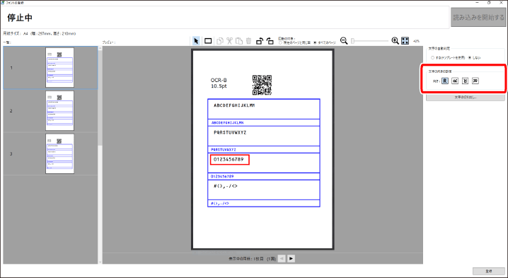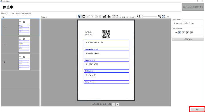[文字の自動判定]で[する(テンプレートを使用)]を設定している場合は、[文字一覧]に文字が自動入力されます。自動入力された文字が正しいことを確認してください。