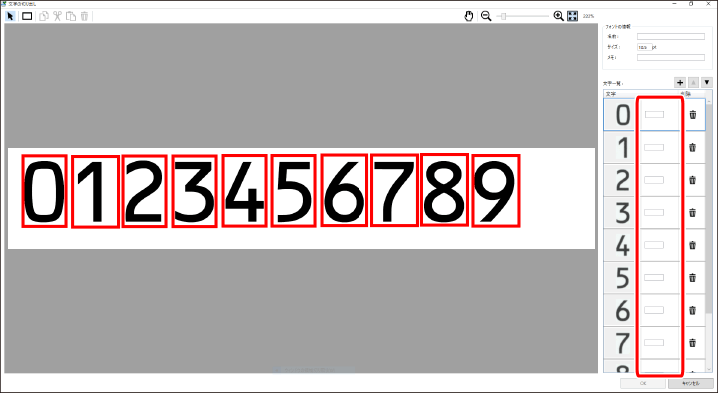 [文字の自動判定]で[しない]を設定している場合は、登録する文字のトリミング枠を確認し、[文字一覧]に文字を入力してください。