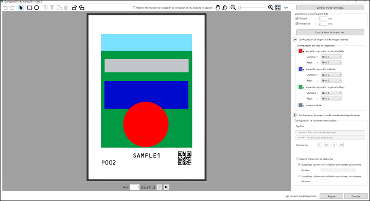 Configure ajustes como, por ejemplo, el área de inspección y el nivel de inspección para cada trabajo de inspección. Establezca la configuración de inspección para todas las imágenes principales.