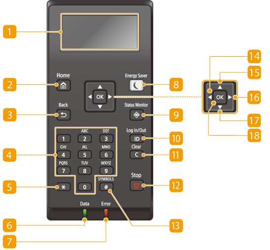 부서 ID 관리가 활성화되어 있을 때 ID와 PIN을 입력한 후 이 키를 눌러서 로그온합니다. 기기 사용을 마친 후 이 키를 다시 누르면 로그오프됩니다.