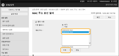 MAC 주소를 선택하고 [삭제]를 클릭합니다.