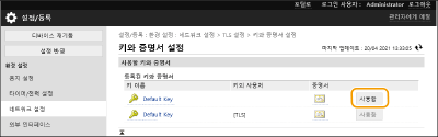 키와 인증서를 직접 생성하여 사용하려면, 아래의 절차를 따르기 전에 키와 인증서를 생성하십시오. 네트워크 통신용 키 및 인증서 생성하기 인증 기관(CA)으로부터 획득한 키와 인증서를 사용하려면, 아래의 절차를 따르기 전에 키와 인증서를 등록하십시오. 키 및 인증서 등록하기 |