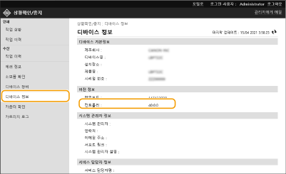 ![]() | 새로운 기능을 추가하거나 기존 기능의 문제를 해결하기 위해 주기적으로 새로운 펌웨어가 제공됩니다. 새로운 펌웨어가 있으면 다음의 절차를 따라 기기를 업데이트 하십시오. 펌웨어 업데이트를 실행하려면 관리자 권한이 필요합니다. |
