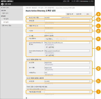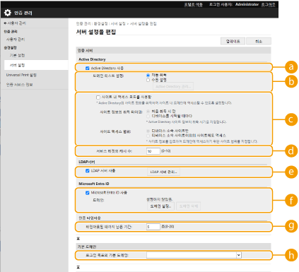 ![]() | Active Directory, Microsoft Entra ID 또는 LDAP 서버를 추가 인증 장치로 지정하려면 인증에 사용되는 서버의 정보를 등록해야 합니다. 필요에 따라 연결 테스트를 수행하십시오. |