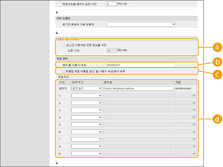 [역할] | 기준에 부합하는 사용자에게 적용할 권한을 선택합니다. |